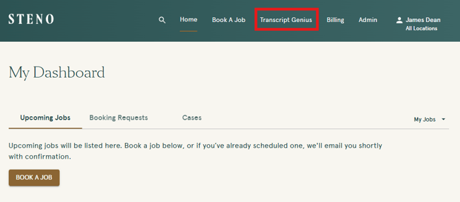 The Firm Dashboard and Transcript Genius are two connected tools that work together to manage your depositions from start to finish. The Firm Dashboard is where you book and manage your deposition jobs. Transcript Genius is where you analyze and interrogate the transcripts from those jobs.