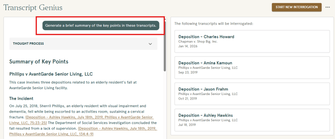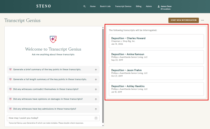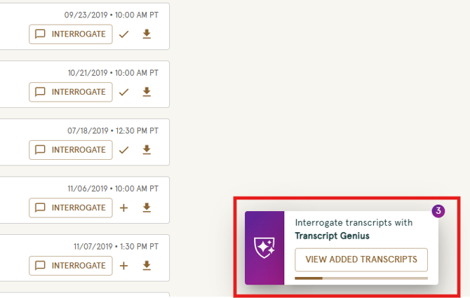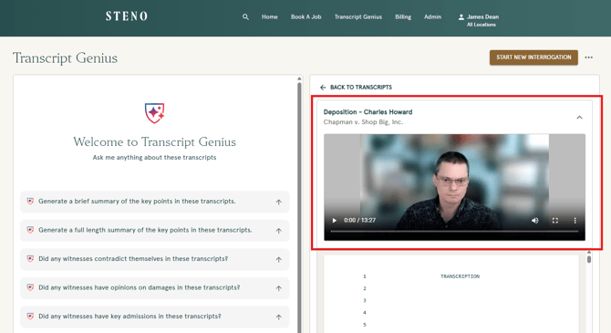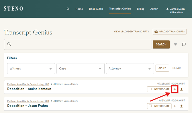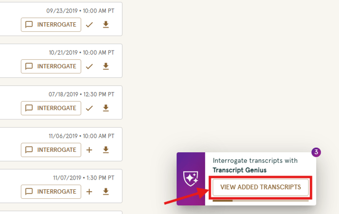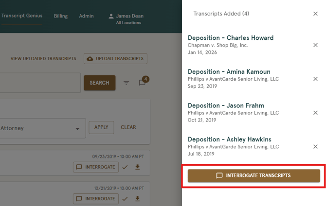 - You must have Transcript Genius Interrogation enabled to interrogate transcripts. Click here to learn how to enable Transcript Genius for your firm.
